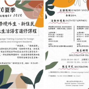 2020金門大學華語文中心夏季境外生、新住民在地生活語言進修課程