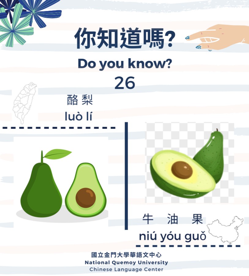 ‘Konjac’ is called “jǔ ruò” in Taiwan, as opposed to “mó yù” in mainland China.