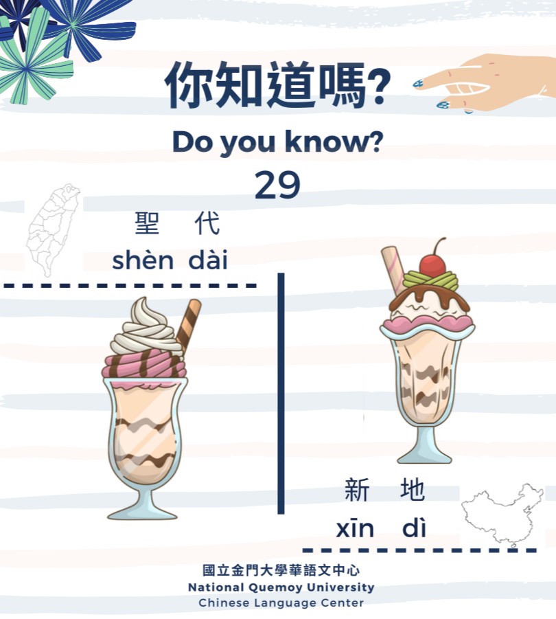 ‘Potato chips’ is called “yáng yù piàn” in Taiwan, as opposed to “shǔ piàn” in mainland China.