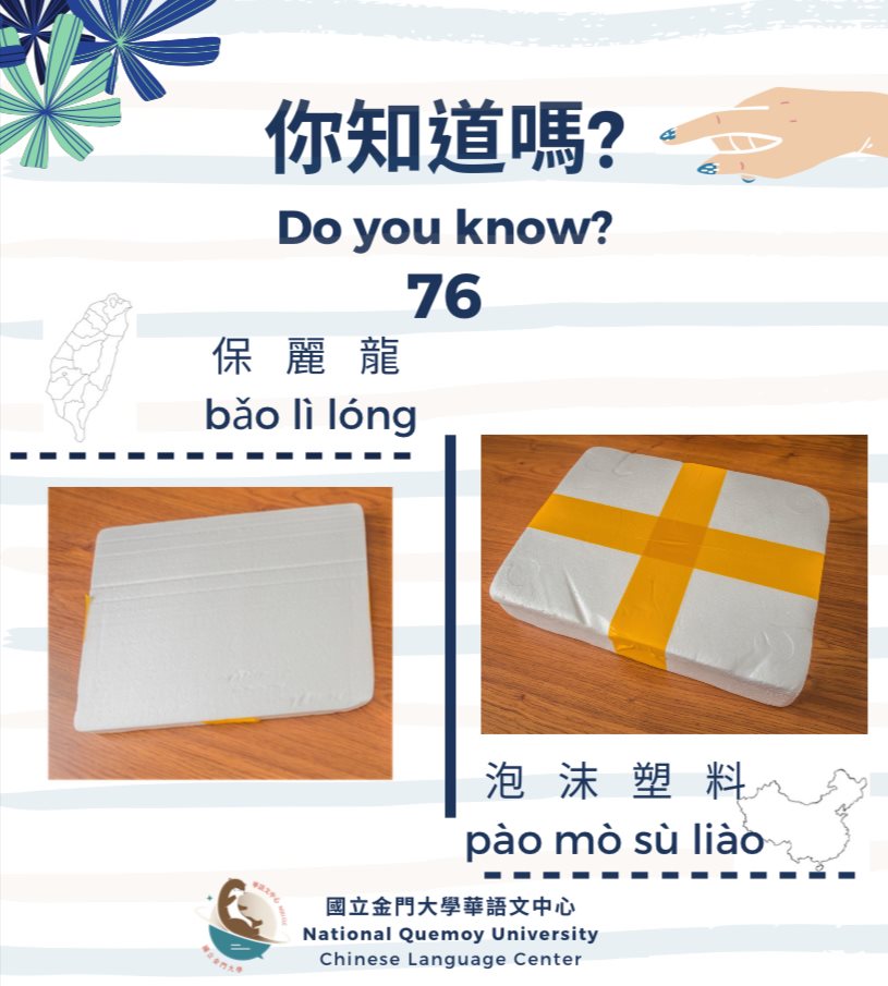 兩岸語言差異詞 75 你知道嗎? 2021-05-29 2021-05-29 ‘Dubai’ is called “dù bài” in Taiwan, as opposed to “dí bài” in mainland China.