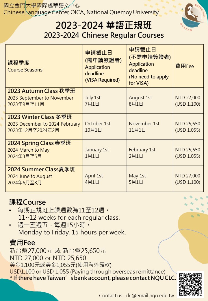 Pusat Bahasa Mandarin, Kantor Urusan Internasional National Quemoy University Panduan Penerimaan “Kelas Bahasa Mandarin Online untuk Sekolah di Negara dan Wilayah Asia Tenggara”